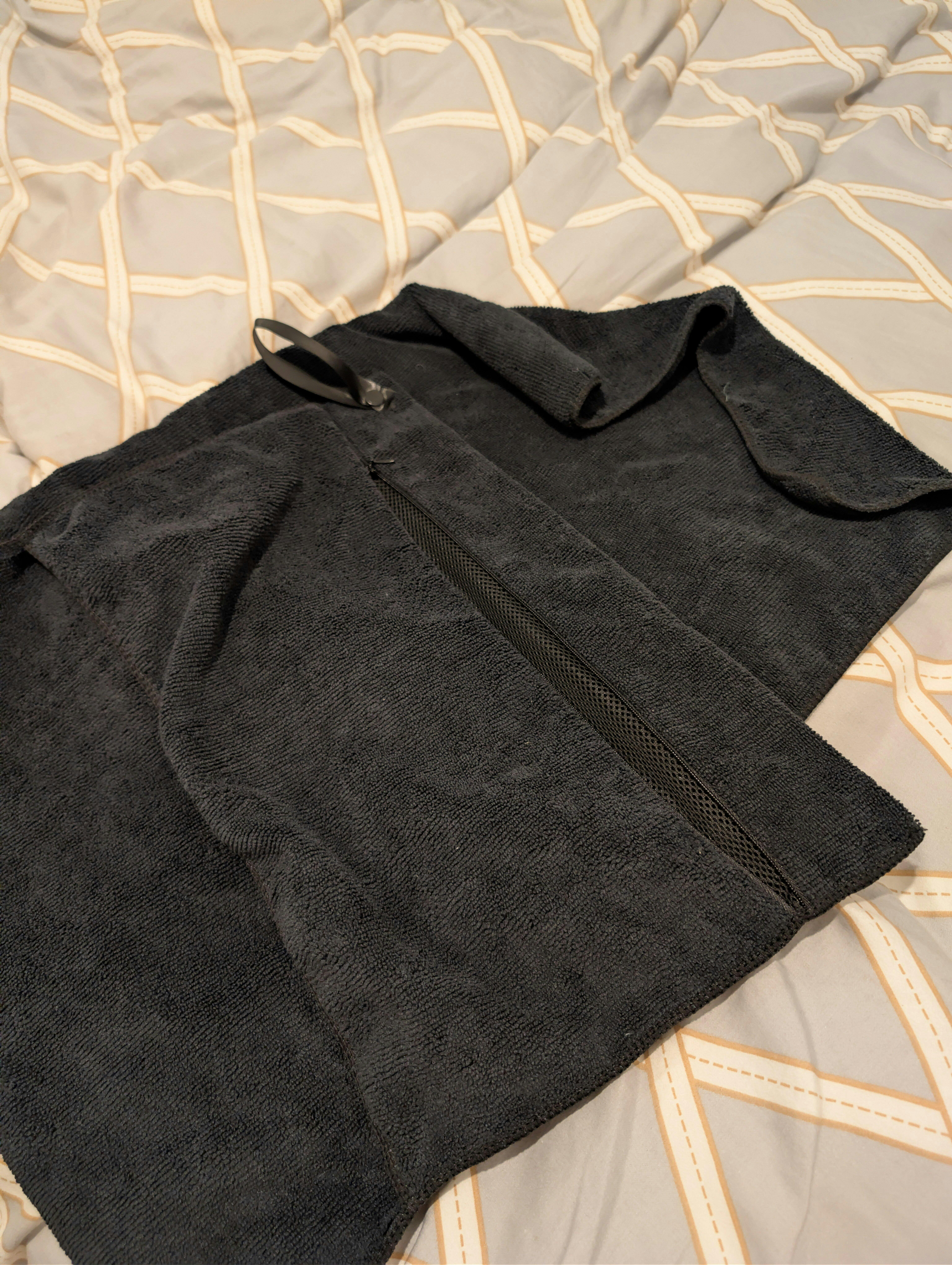 This towel surprised me. It’s thin but absorbs amazingly well. And I absolutely love the hidden pocket . Super convenient!